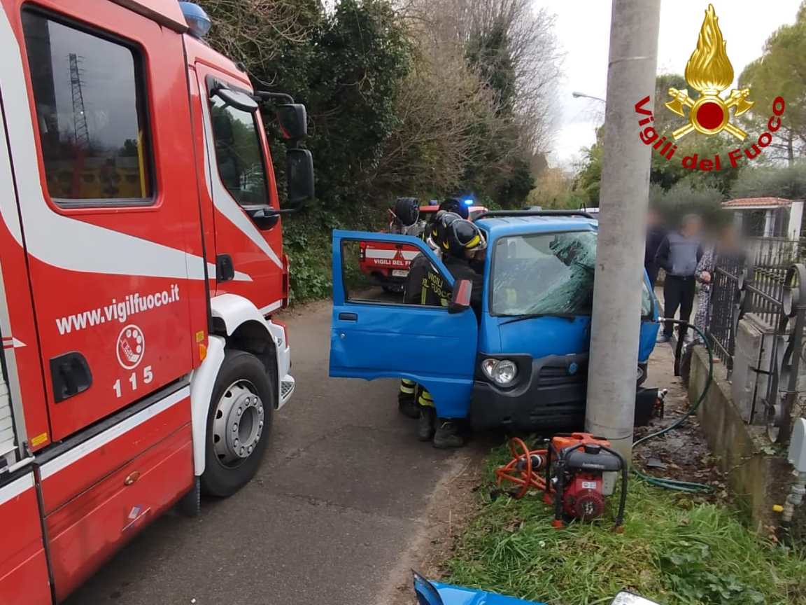 TERNI – Incidente stradale autonomo nel pomeriggio di sabato 18 gennaio. Un sessantenne, mentre percorreva strada santa Filomena, ha perso il controllo del suo Ape poker andando ad impattare con un palo di cemento. Incastrato tra le lamiere.
