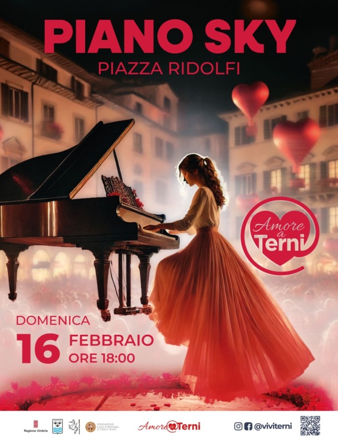 TERNI – Si intitola “Piano Sky” lo show che ha già conquistato pubblico in tutto il mondo, con la sua unicità e ricercatezza crea emozioni capaci di attraversare confini e culture. Si tratta di un pianoforte volante come linguaggio universale della musica. Lo spettacolo si svolgerà il 16 febbraio alle ore 18 in piazza Ridolfi. Organizzato dall’associazione Ingranaggi di Francesco Montanari e Davide Sacco.