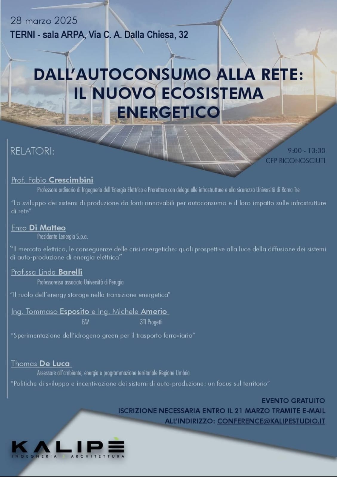 Kalipe Studio Srl, promotore dell’evento, sottolinea l’importanza di questa occasione di confronto: “Siamo orgogliosi di offrire agli operatori del settore e alla cittadinanza un’opportunità di dialogo e di scambio di idee, con l’obiettivo di promuovere uno sviluppo sostenibile del territorio. In un momento storico caratterizzato da grandi sfide ambientali e sociali, è essenziale creare sinergie e condividere soluzioni innovative per affrontare il futuro dell’energia in modo consapevole ed efficace”.