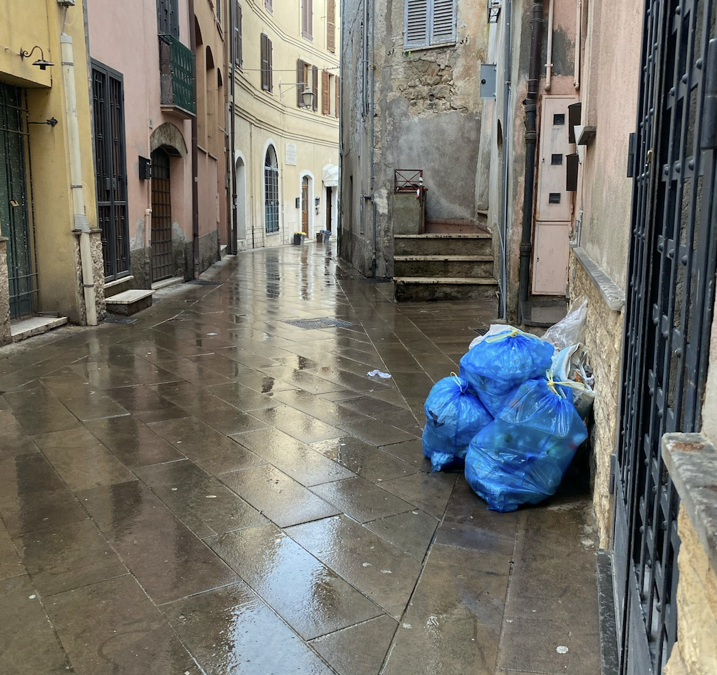 Le foto che pubblichiamo sono state scattate nel corso degli ultimi dieci giorni. «Sì, sono dieci giorni che i sacchi di rifiuti stanno in mezzo alla via, che poi è una via dove passano decine e decine di genitori che accompagnano i figli a scuola la mattina».