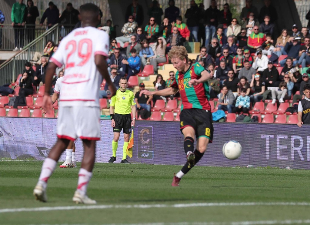 Al minuto 34 De Boer infiammo il Liberati con un tiro da fuori area clamoroso che centra in pieno l’incrocio dei pali. Allo scadere dell’ultimo minuto di recupero del primo tempo, su cross di Broh è Montevago a spedire la palla sulla traversa con un bel colpo di testa.