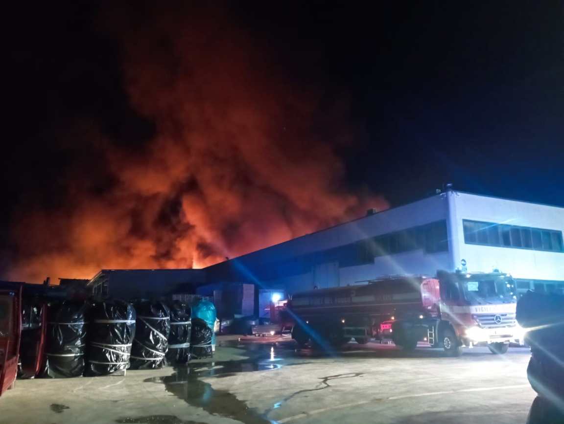 .Le fiamme hanno interessato materiale plastico stoccato all’esterno, generando un’intensa colonna di fumo nero visibile a chilometri di distanza. Al momento non si registrano persone ferite o intossicate, poiché l’impianto risultava chiuso al momento dell’evento.