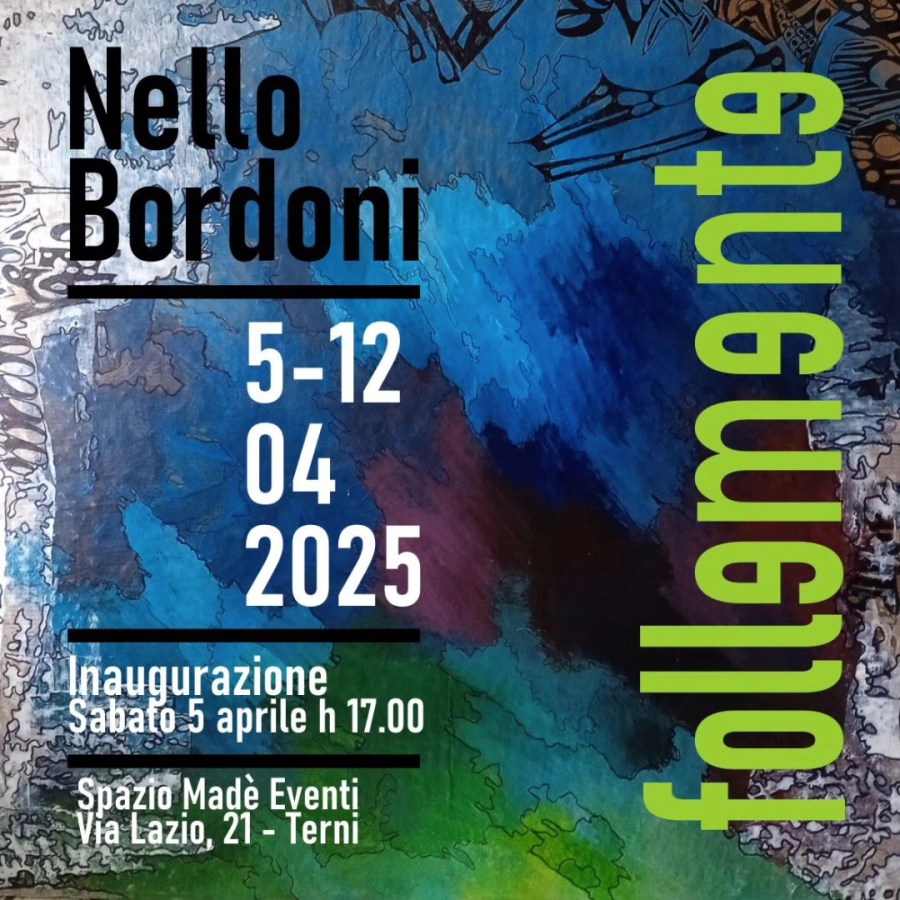 TERNI – Un viaggio nel linguaggio visivo di Nello Bordoni. Grazie alla mostra a cura dell’Ass. Culturale Symbolon intitolata “Follemente”. L’inaugurazione il 5 aprile alle ore 17 presso gli spazi Madè Eventi in via Lazio 21.