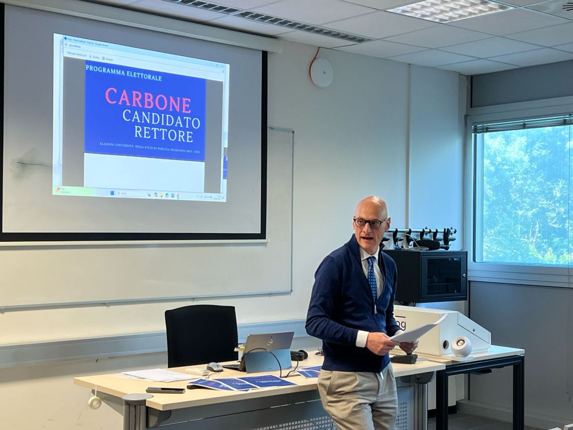 Laureato in Ingegneria elettronica a Padova, Carbone è entrato nell’Ateneo perugino nel 1997 come ricercatore. La ricerca continua ad essere uno dei punti cardine della sua attività accademica, come dimostrano le sue numerose pubblicazioni e il suo significativo impegno anche su scala internazionale. Nel programma elettorale si sottolinea la necessità di rafforzare la capacità di attrazione dell’Ateneo nei confronti dei giovani talenti e di promuovere la valorizzazione del lavoro e del merito per ridurre il rischio di fuga verso altri paesi. Si punta, poi, sulla semplificazione dei processi di ricerca e sull’introduzione della figura del lean manager per migliorare l’efficienza.
