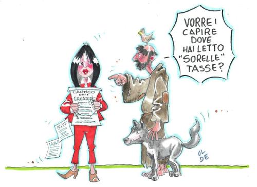 - Il futuro? Si paga dal primo di maggio. Fa piacere chiudere con un sorriso, la vignetta dell’ex segretario regionale della Cisl Umbria, Ulderico Sbarra, raffinato disegnatore. Ecco qua: “Fratello Sole, Sorelle Tasse”.