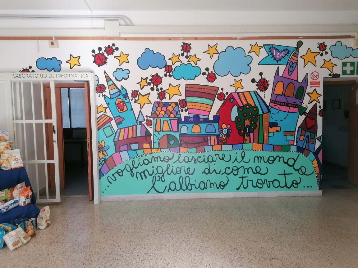 TERNI – Una giornata dedicata alla solidarietà, al divertimento e all’allegria. Quella che ha coinvolto i bambini e le bambine della scuola primaria Feliciangeli a Collescipoli. Non solo si è inaugurato il murales realizzato da Simona Zoo nell’atrio del plesso scolastico, ma si sono raccolti anche gli alimenti e generi di prima necessità in favore dell’ Associazione Vruna vecchietti con l’obiettivo di aiutar ele famiglie in difficoltà.