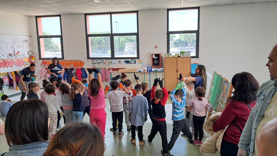 Insieme ai bimbi delle sezioni Farfalle, Gufetti e Coniglietti (tutti di cinque anni), anche i loro genitori per un totale, quindi, di circa 170 persone. I piccoli allievi hanno preso parte a un’attività di raccolta dei rifiuti, che, visto il maltempo, si è tenuta in forma simulata all’interno del plesso scolastico. Un momento di pulizia educativo e giocoso, attraverso cui i bambini hanno imparato l’importanza di tenere pulito il territorio, rispettare l’ambiente, prendersi cura degli animali ea riflettere sui concetti di riciclo e riuso della plastica.