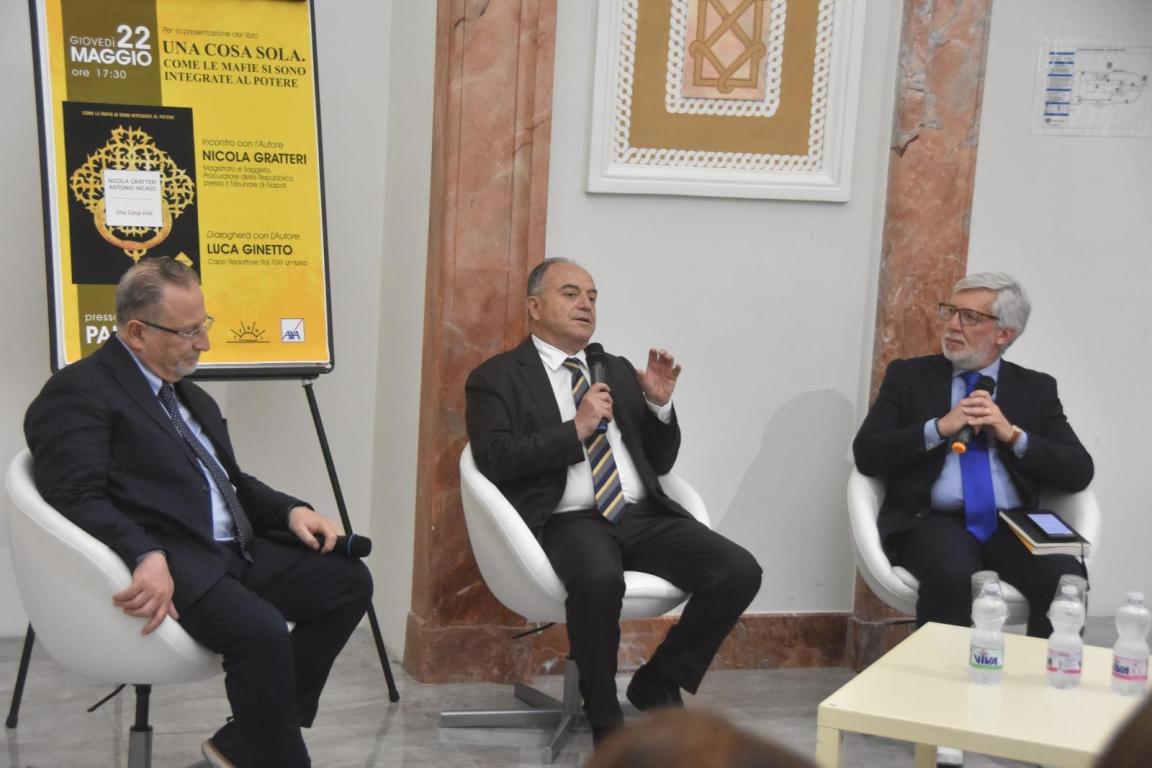 TERNI – Il PalaSì, in piazza della Repubblica, blindato per la presentazione dell’ultimo libro del procuratore di Napoli, Nicola Gratteri, “Una cosa sola. Come le mafie si sono legate al Potere”.