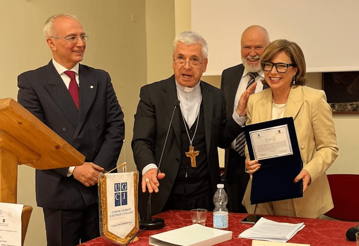 TERNI – Per aver promosso una visione economica alternativa alla logica di guerra fondata su prossimità, fraternità, etica e giustizia sociale, ispirata al principio “si vis pacem para pacem” (se vuoi la pace, prepara la pace): con questa motivazione Francesca Di Maolo, presidente dell’Istituto Serafico di Assisi, ha ricevuto a Terni il Thomas More International Award, conferito dall’Unione giuristi cattolici italiani – sezione San Tommaso Moro di Terni – in collaborazione con il Movimento Cristiano Lavoratori Umbria. Il premio le è stato consegnato da al vescovo Francesco Antonio Soddu.