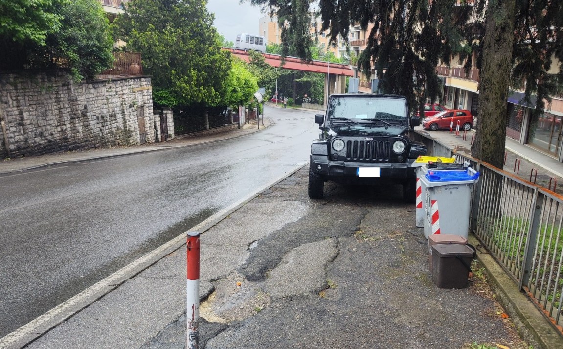 Vero che il marciapiede in questione è largo e comodo, perciò per qualcuno anche invitante, ma possibile che in tutto il capoluogo umbro non ci sia una zona che si salvi dal parcheggio “cotto e mangiato”? Tra i commenti c’è chi nota un paletto in difesa in solitaria del marciapiede: «Notevole anche il paletto solitario, quasi poetico»