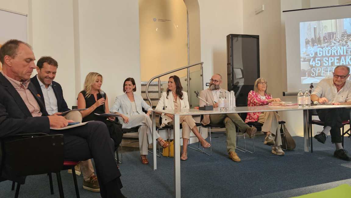 La presentazione, moderata dal giornalista Umberto Berlenghini, al Centro servizi Galeazzo Alessi di Perugia martedì 24 giugno alla presenza della consigliera regionale Maria Grazia Proietti, della sindaca di Perugia Vittoria Ferdinandi, accompagnata dagli assessori comunali David Grohmann (Ambiente, aree verdi, rigenerazione urbana, bellezza urbana, transizione ecologica, politiche del cibo) e Francesca Tizi (politiche energetiche, edilizia scolastica, istruzione, servizi al cittadino), Federico Sisti (segretario generale della Camera di Commercio dell’Umbria), Maurita Passaquieti (Ecosanfra), Davide Placidi (Ecosanfra), Giovanni Parapini (direttore Rai Umbria).