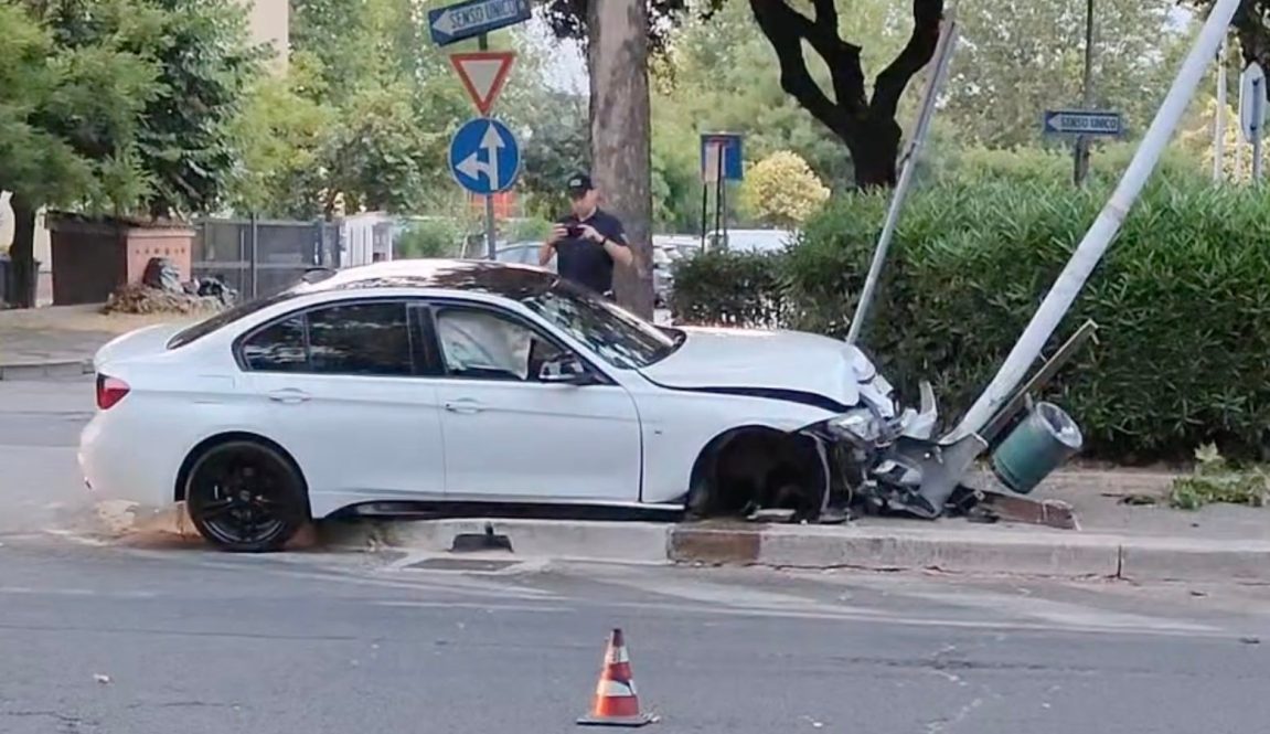 TERNI – Uno schianto pazzesco alle 21,30 di lunedì in via Leopardi a Terni. Una Bmw finisce contro un palo della pubblica illuminazione per cause ancora da accertare e lo piega. L’auto perde anche la ruota anteriore destra (fa un volo di venti metri) probabilmente nell’impatto, ma la dinamica dell’incidente è ancora al vaglio della polizia locale intervenuta sul posto.
