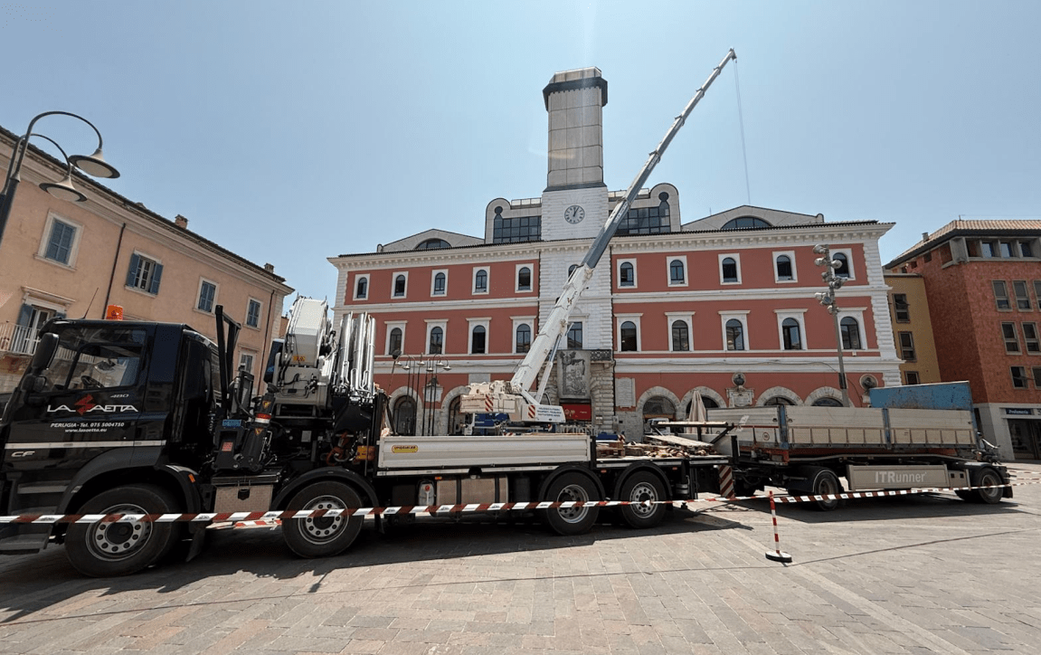 TERNI – Tutti pazzi per la Bct. Tutti col naso all’insù, la mattina di venerdì 6 giugno, per assistere all’arrivo, dall’alto, di 8 torri di raffreddamento. Il secondo stralcio di un intervento programmato, per 600 mila euro, che prevede la rimozione delle attuali centrali termiche (chiller) e la sostituzione delle due torri evaporative, poste sul tetto del fabbricato. LE FOTO