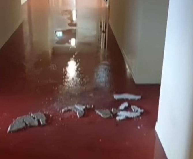 PERUGIA – Calcinacci venuti giù e pozzanghere in mezzo ai corridoi. Danni da parte del maltempo nel pomeriggio di sabato 26 luglio all’interno dello studentato Fermi di Lacugnano. A documentare il tutto è l’assessore regionale Fabio Barcaioli attraverso i propri canali social.