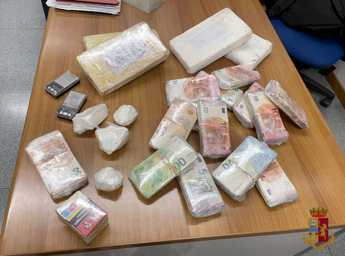 Nell’occasione personale della locale Squadra Mobile, ha assistito alla cessione di stupefacente tra due cittadini albanesi che venivano fermati e sottoposti a controllo. In quella circostanza uno dei due soggetti, tentando di disfarsi di oltre due kg di sostanza stupefacente, si dava alla fuga ma veniva bloccato e tratto in arresto. L’altro soggetto, fermato a bordo del proprio mezzo, è stato trovato in possesso della somma di euro 70.000 in contanti verosimile provento dell’attività di spaccio: il denaro è stato rinvenuto in parte in un vano a doppiofondo solitamente usato per l’occultamento della sostanza stupefacente ed in parte all’interno di uno zaino. L’attività di indagine ha portato alla perquisizione domiciliare dei due soggetti: in un’abitazione, situata poco lontano dal luogo della cessione, è stata rinvenuta oltre 2 kg di sostanza stupefacente pronta alla vendita, materiale per la pesata ed il confezionamento, nonché 7500 euro in contanti. La successiva perquisizione domiciliare effettuata nell’abitazione di uno dei due a Castelnuovo Berardenga, ha consentito, con l’ausilio di personale della Squadra Mobile di Siena, il rinvenimento per il successivo sequestro di oltre 10 chili di cocaina, materiale per il confezionamento e 16 mila euro in contanti, verosimile provento dell’attività illecita.