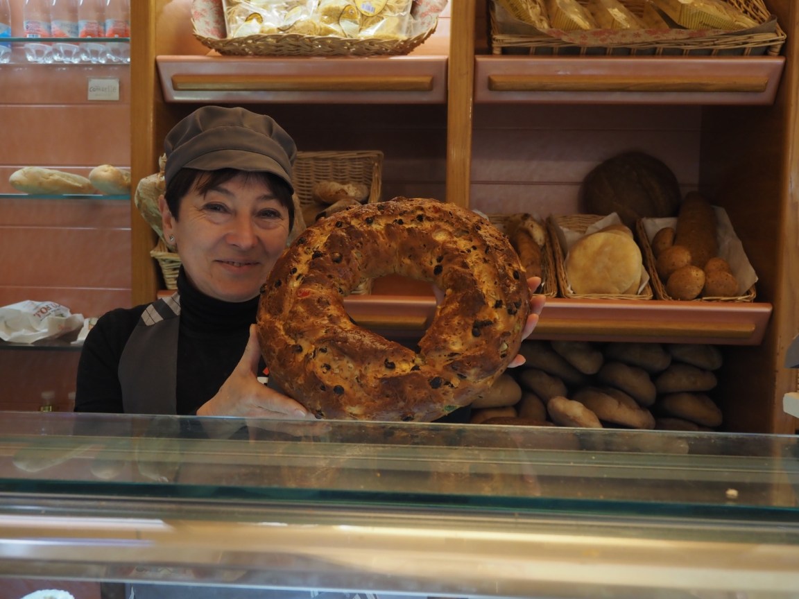 Era collegato al luogo, nel borgo di San Pietro, dove dal 1890 si producevano il pane e gli altri dolci apprezzati dalla comunità perugina. Abbiamo chiesto alla storica gestrice del negozio, Orietta Bachiorri, di ricordare qualcosa della storia di questo tradizionale punto vendita.