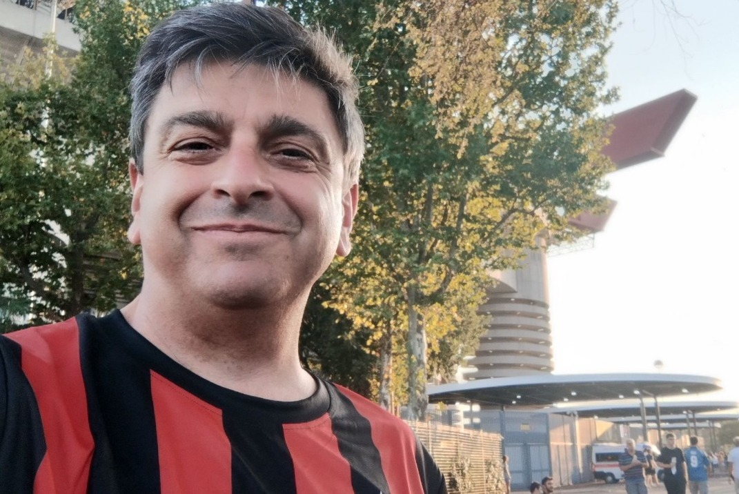 Nel suo sito compare in primo piano, sorridente, con la mitica maglia rossonera, davanti ai tornelli.