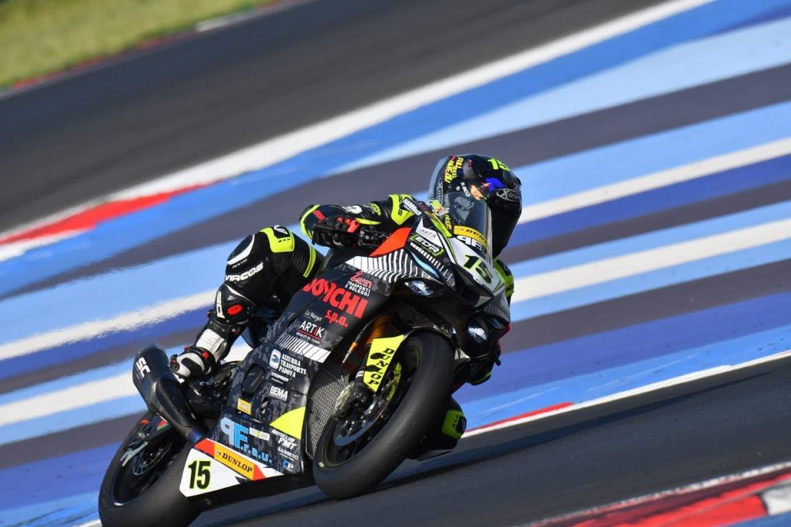 Il tutto reso possibile «dal grande lavoro del Team Black Sheep di Padova, che lo affianca nella preparazione della Yamaha R6, con il supporto di Yamaha Italia e dei tanti sponsor che credono nel suo percorso. Ora lo sguardo è puntato sul prossimo round, in programma il 13-14 settembre a Cremona, dove Gabriele tenterà un nuovo assalto al gradino più alto del podio».