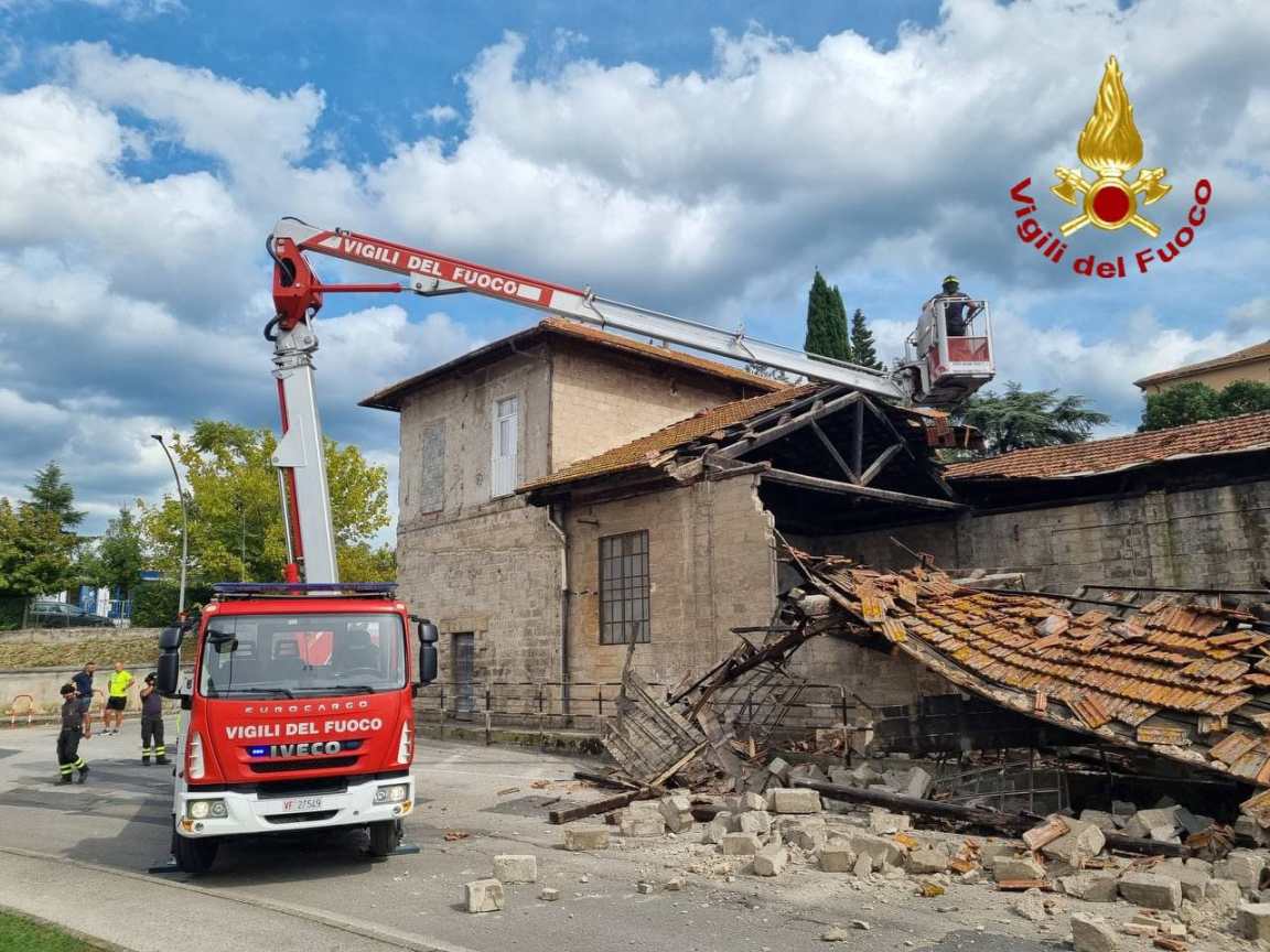 SPOLETO (Perugia) – Crolla parte dell’ex rimessaggio dei vagoni della Spoleto-Norcia. L’episodio è avvenuto nel primissimo pomeriggio di lunedì 22 settembre.
