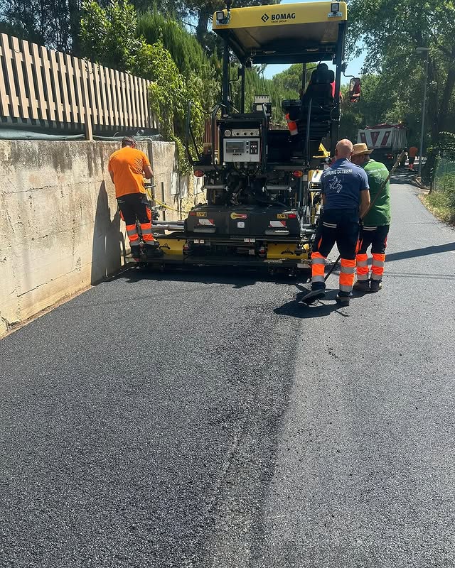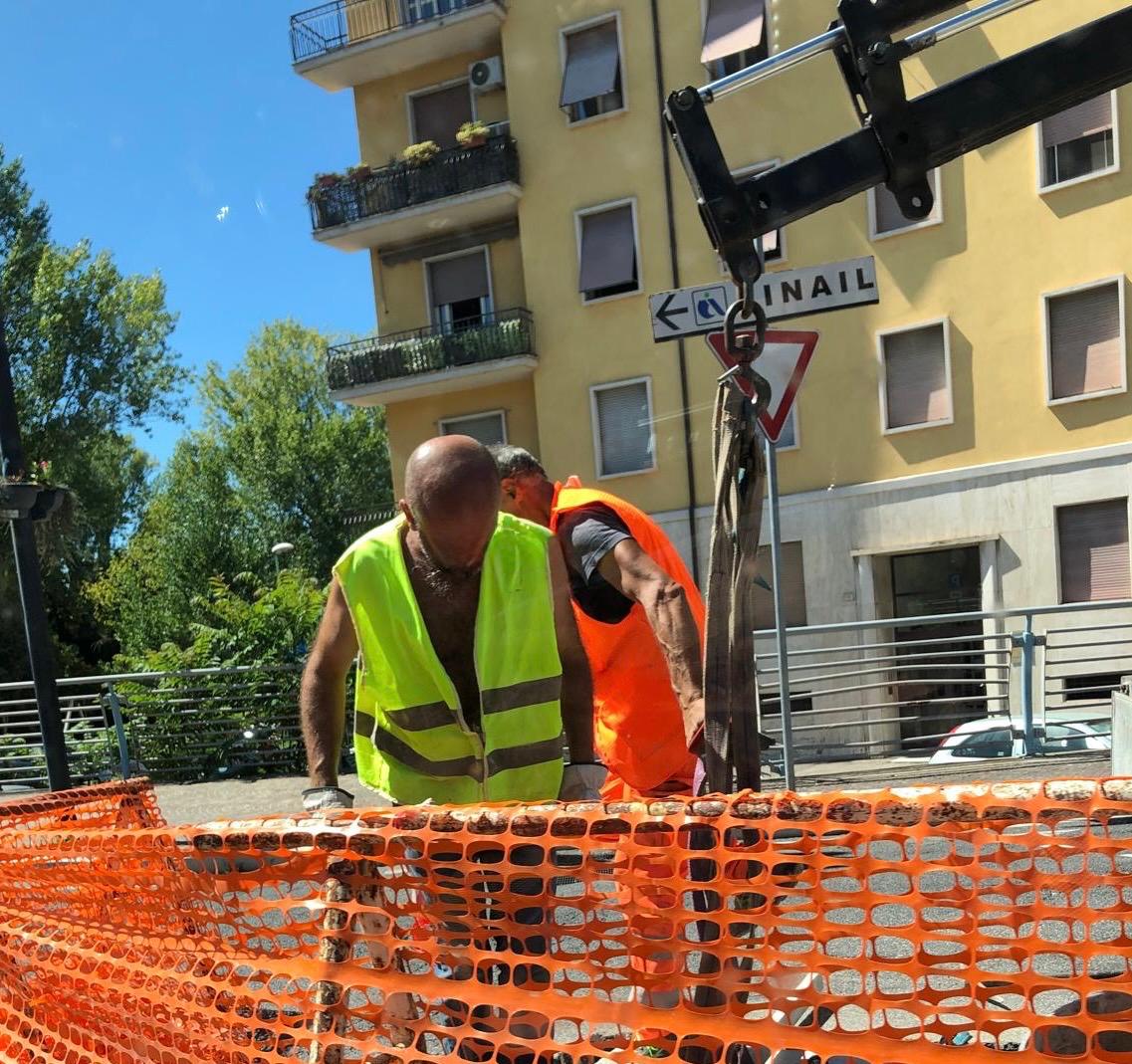 A Ponte Romano, in un tratto di strada ad alta densità di traffico, in tre senza né caschi, né guanti e né occhiali di protezione. Anche la delimitazione di cantiere insufficiente: senza barriere rigide, coni, lampeggianti, segnaletica adeguata, nonostante l’utilizzo di un mezzo con braccio meccanico. Meno protetti di tutti i dipendenti comunali intenti ad asfaltare le strade, che non indossano neppure i gilet ad alta visibilità. LE FOTO