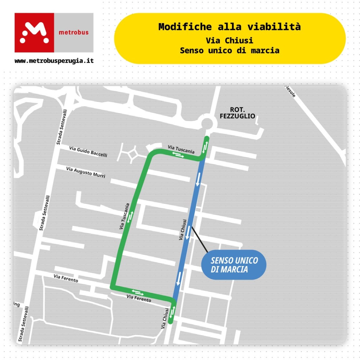 Per aggiornamenti sui lavori del Metrobus Perugia e sui provvedimenti di viabilità è possibile consultare il sito http://www.metrobusperugia.it