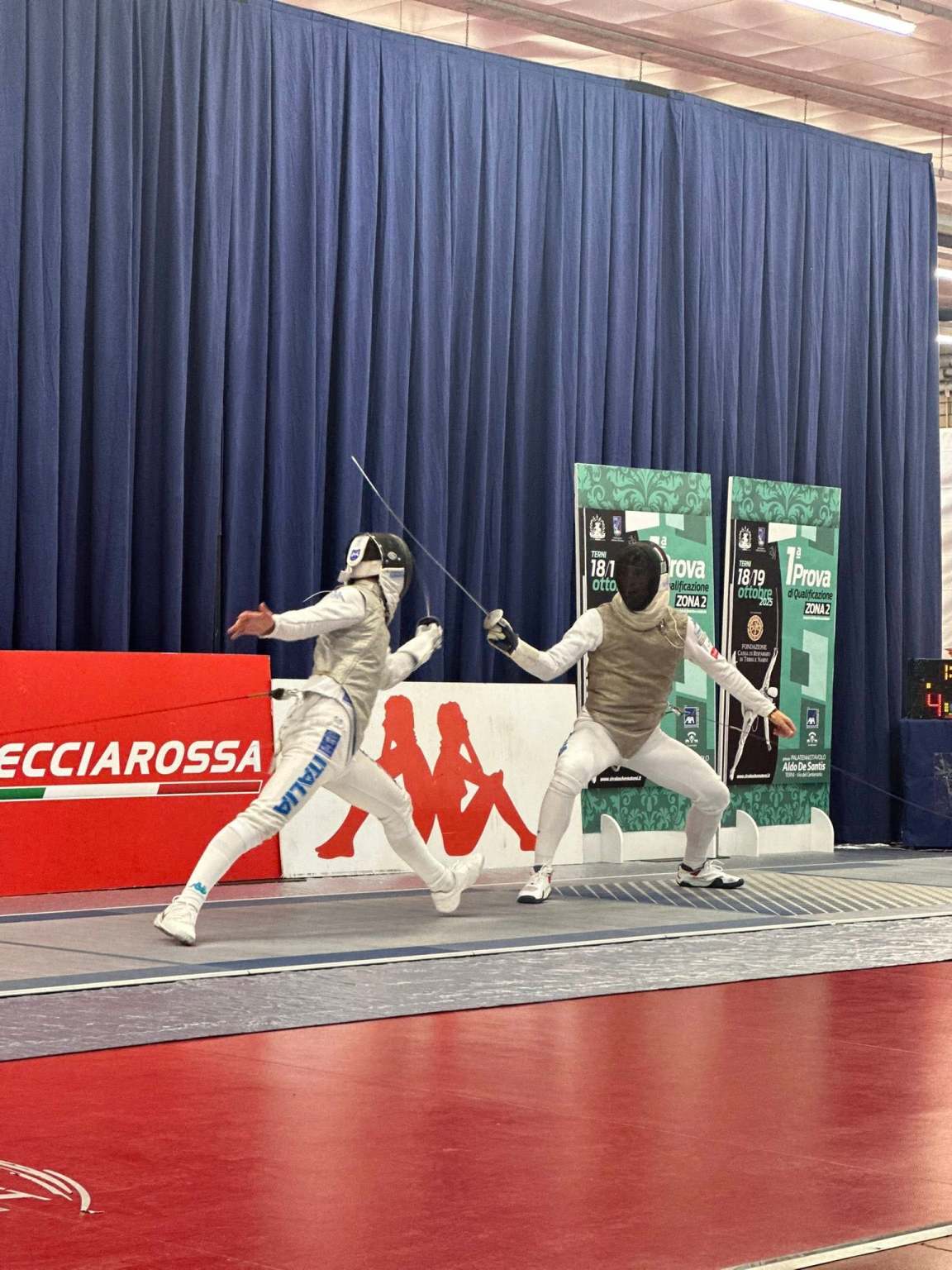 Nel fioretto maschile è stato Tommaso Archilei a distinguersi con una prova di grande spessore tecnico e caratteriale. Partito dal trentottesimo posto dopo la fase a gironi, Archilei ha saputo rimontare incontro dopo incontro, imponendosi con punteggi netti e convincenti: 15-3 nel primo assalto, poi 15-11, 15-10 nei sedicesimi e ancora 15-10 per accedere ai quarti di finale. Qui ha superato Federico Sposato con un altro 15-10, guadagnandosi l’accesso a una semifinale che ha messo in luce tutta la sua determinazione. Sotto 9-14 contro Antonio Gai, Archilei ha trovato la forza di recuperare punto su punto fino al 14 pari, cedendo soltanto all’ultima stoccata. Una sconfitta amara, ma che non cancella la splendida prestazione e, soprattutto, la conquista del pass per la fase nazionale.