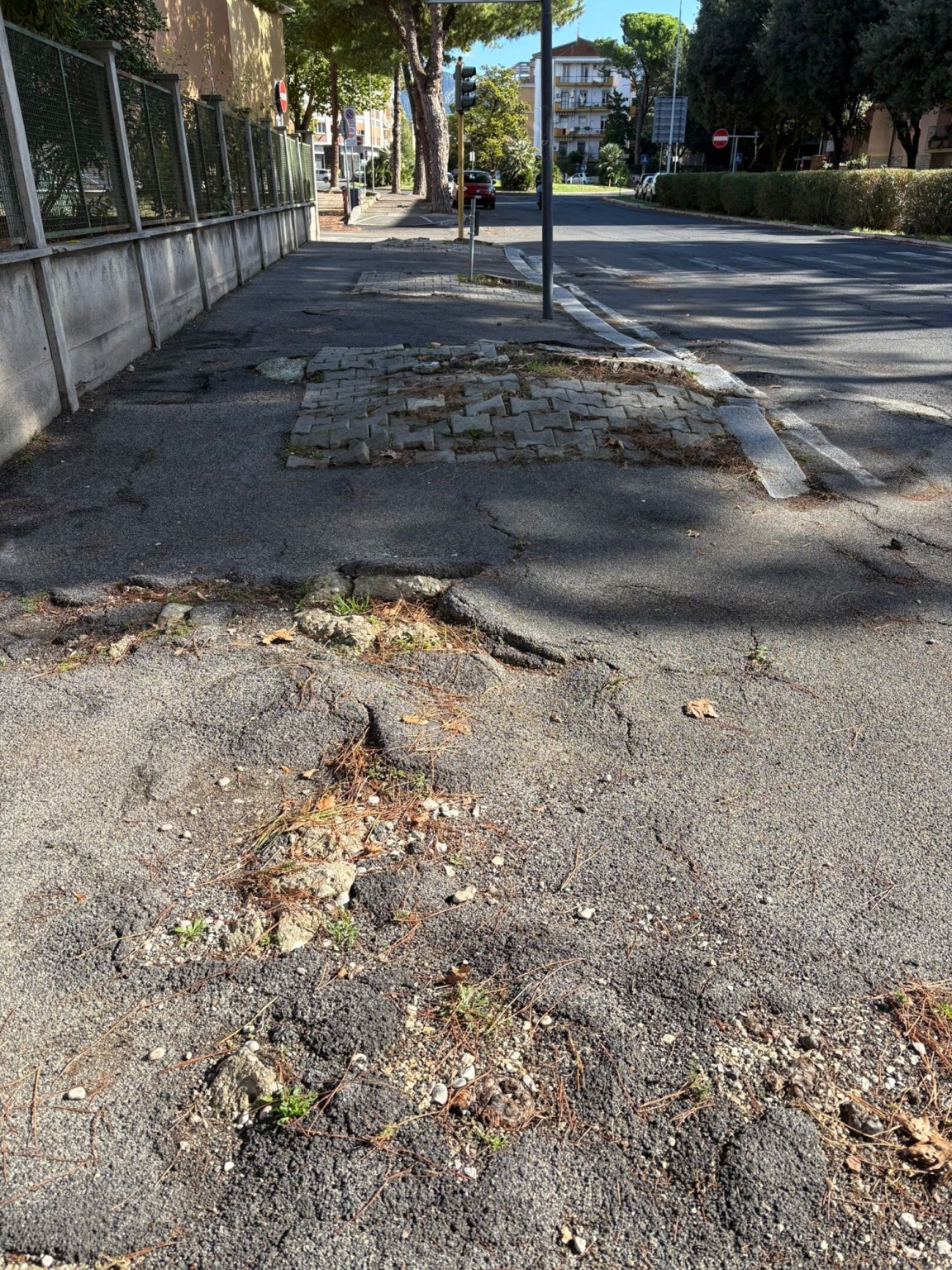 Il risultato è un percorso a ostacoli che mette a dura prova chiunque vi passi: pedoni costretti a zigzagare tra dossi e buche, passeggini che sobbalzano, carrozzine che rischiano di ribaltarsi. Un problema non solo estetico, ma anche di sicurezza.