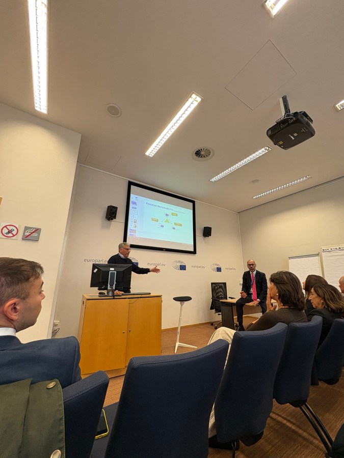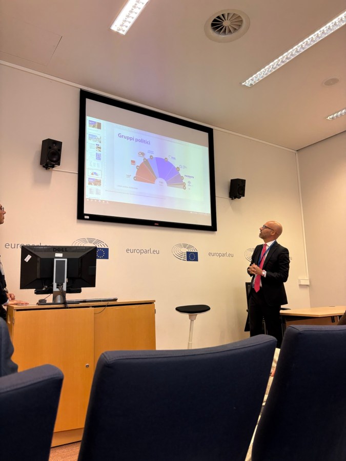 Successivamente, abbiamo avuto l’opportunità di visitare la sede principale del Parlamento Europeo, dove siamo stati accolti dall’onorevole Marco Squarta, eurodeputato umbro, che ci ha guidati all’interno dell’aula plenaria e delle principali aree di lavoro. Durante l’incontro, l’onorevole Squarta ha illustrato le dinamiche legislative dell’Europarlamento, spiegando con chiarezza le funzioni dei deputati, l’organizzazione dei lavori e le sfide che l’Unione si trova ad affrontare oggi.