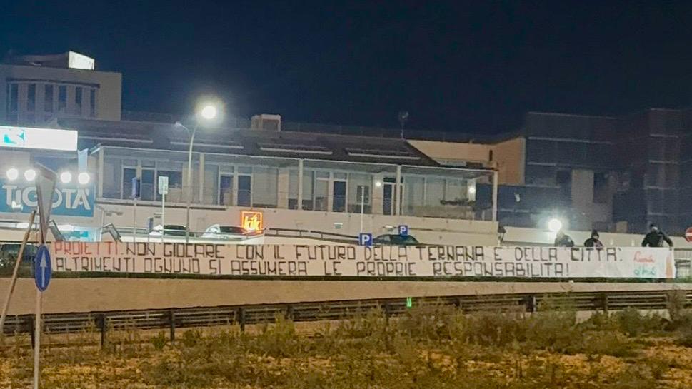 TERNI – «Terni non starà a guardare: occhio a quello che fate». La città si risveglia tappezzata di striscioni che inneggiano alla guerra contro la Regione dell’Umbria. “Colpevole”, per la tifoseria della Ternana e per chi ha fissato sui cavalcavia e all’imbocco per il Rato i messaggi minatori, di far fallire il Club rossoverde.
