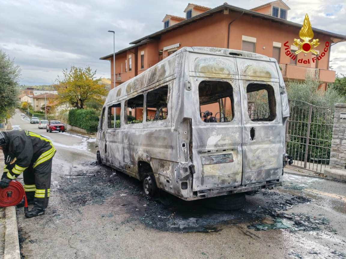 MAGIONE (Perugia) – Intervento dei vigili del fuoco per spegnere un incendio si è sviluppato un incendio a bordo di uno scuolabus.
