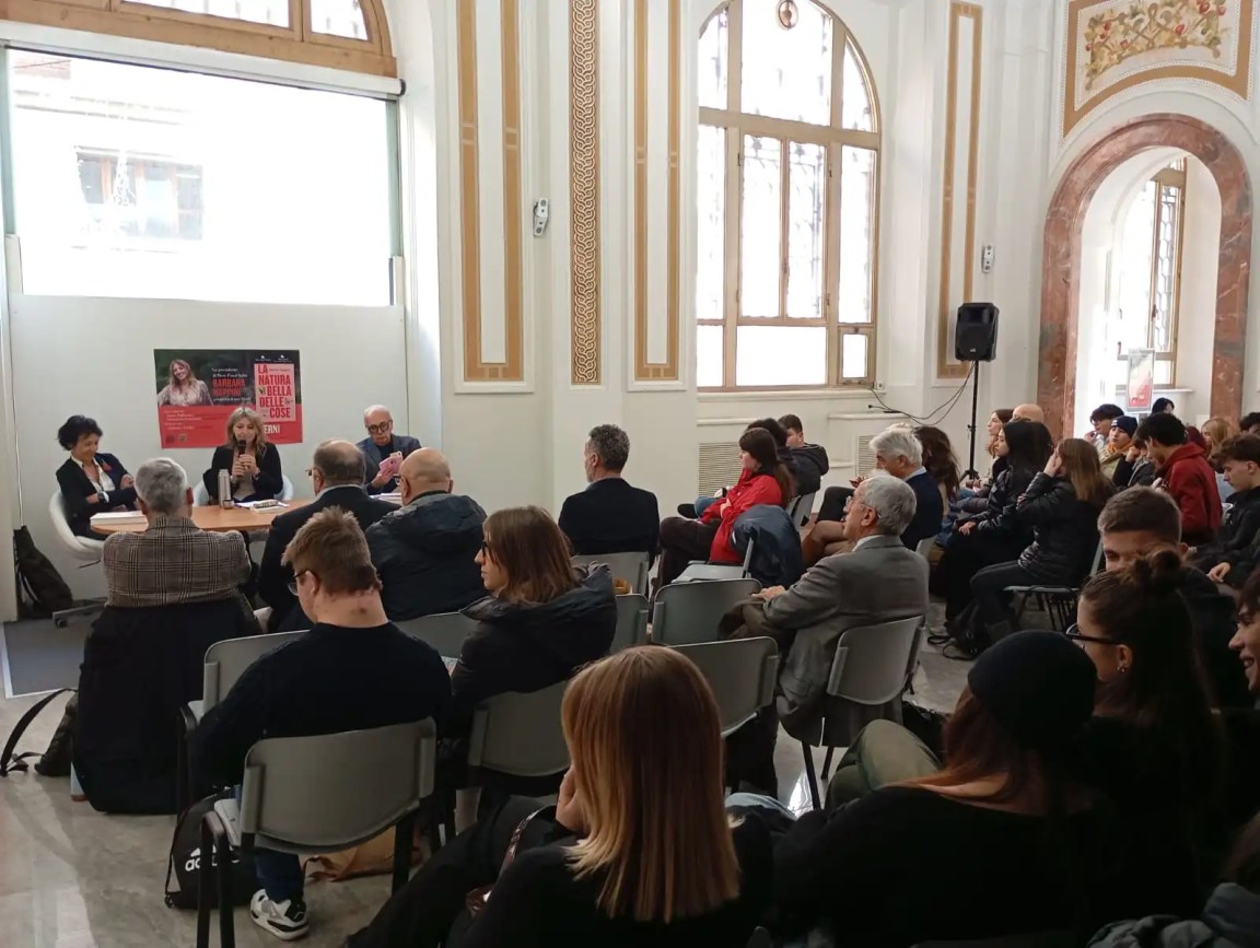 TERNI – Al PalaSi si è svolta ieri, mercoledì 3 dicembre, la presentazione del libro La Natura bella delle cose di Barbara Nappini, presidente di Slow Food Italia. L’incontro ha visto la partecipazione dell’autrice, di Federico Varazi, vicepresidente nazionale di Slow Food, e di numerose classi dell’Istituto Alberghiero Casagrande di Terni, coinvolte in un momento di formazione e confronto sui valori che guidano il movimento Slow Food. Il contenuto del volume è stato raccontato attraverso un dialogo vivo e piacevole tra Barbara Nappini e il professor Raffaele Federici, docente di Sociologia dell’Università di Perugia. I due interlocutori hanno guidato il pubblico in un percorso che parte dal concetto di bellezza, intesa non come estetica fine a sé stessa, ma come qualità che nasce dai gesti quotidiani come impastare il pane, osservare un albero, riconoscere la ricchezza dei suoi frutti.