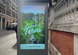 in %varie%, -> prima pagina, Attualità Totem turistici con la Cascata a secco Il Comune di Terni sceglie una foto che fa discutere. «La peggio!»