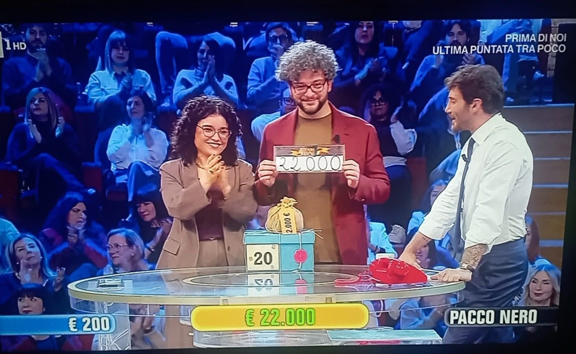 FOLIGNO (Perugia) –Antonio torna nella città della Quintana con 24mila euro, 22mila accettati dal dottore e 2mila portati in dote dal cagnolino Gennarino. L’operaio folignate è stato, insieme alla compagna Valeria, il concorrente della puntata di Affari tuoi di questa sera (domenica 25 gennaio). Finale emozionante, con il pacco da 200 euro e il pacco nero come unici che restano sul tabellone. Il dottore offre 22mila. Antonio, dopo una lunga riflessione e su consiglio della su dolce metà, accetta. C’è da scoprire la cifra contenuta all’interno del pacco misterioso ed esplode la gioia quando viene svelato che valeva 20mila euro.