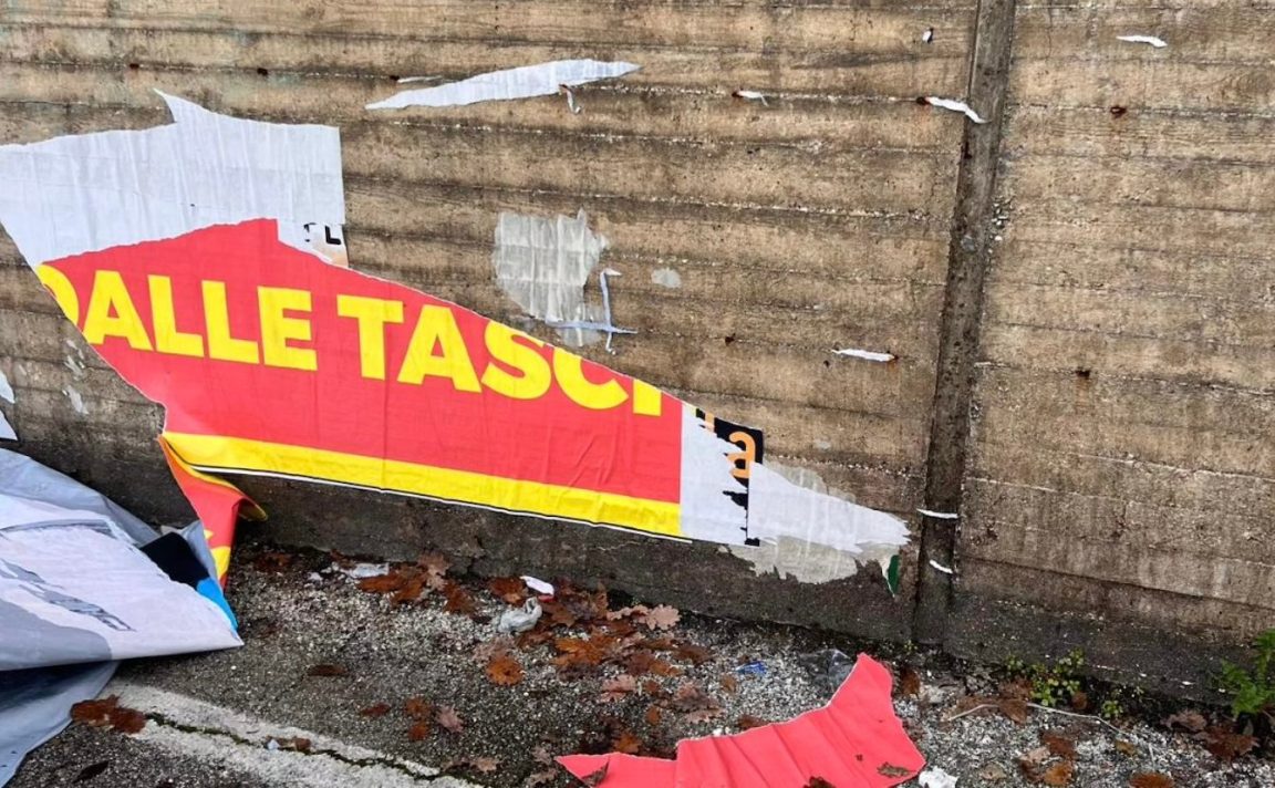 TERNI – «Uno strano concetto di democrazia. Il nostro manifesto sulle tasse è durato poco più di un giorno». Il manifesto “La sinistra TASSA gli umbri” dura meno di un dì. Affisso il 15, distrutto il 16. Forza Italia, Lega, Fratelli d’Italia, Umbria Civica e Udc conducono la protesta contro «il più pesante salasso fiscale della storia dell’Umbria senza alcuna reale necessità» e si ritrovano con la carta straccia in terra. Il manifesto affisso per ricordare alla giunta Proietti che centinaia di famiglie finiranno sul latrico per questa manofra, strappato dai muri. La verità, per dirla alla Caterina Caselli, fa male.