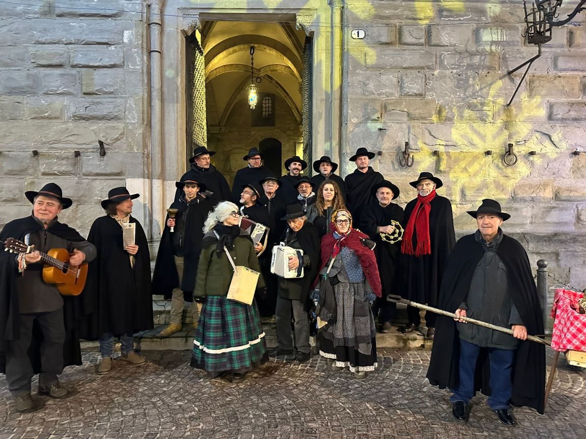 CITTÀ DI CASTELLO (Perugia) – L’anno nuovo è arrivato ma le tradizioni non vengono dimenticate. Fisarmonica, chitarre, mandolino, mantelli, abiti e canti popolari ed ecco andata in scena la Pasquella organizzata dalla società rionale Mattonata.