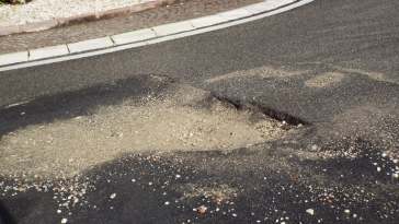 Ha retto poche ore la bitumazione delle buche. Lo sdegno dei residenti. LE FOTO davanti al Mercato di Campagna Amica