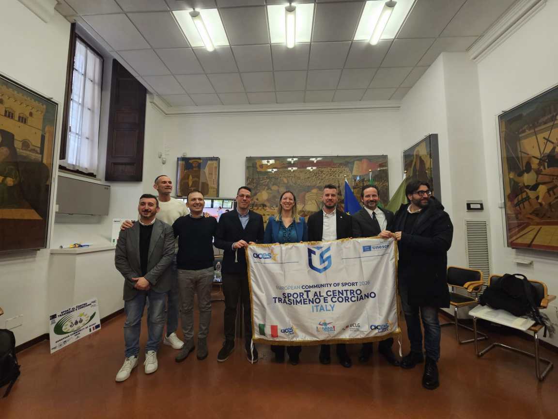 PERUGIA – Sono stati presentati nella mattinata del 18 febbraio in sala Fiume a palazzo Donini, i calendari degli eventi sportivi 2026 dei Comuni di Corciano, Castiglione del Lago e Passignano sul Trasimeno, nell’ambito dell’avvio ufficiale delle attività legate al riconoscimento di European Community of Sport 2026 e dell’inaugurazione dell’anno europeo dello sport.