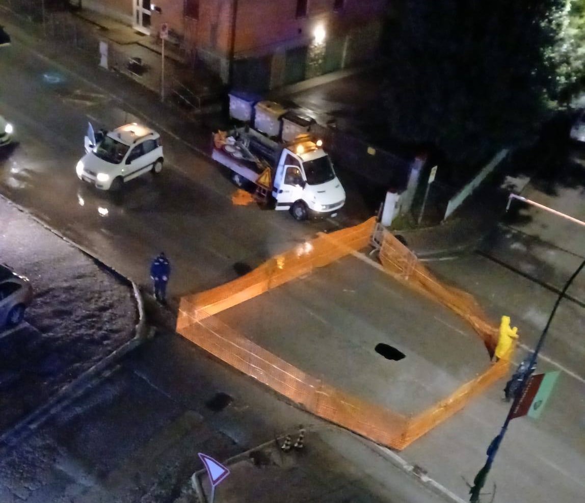 PERUGIA – Non c’è pace per San Sisto, quartiere che già deve fare i conti con i cantieri per il Metrobus. Nelle prime ore della mattinata odierna (mercoledì 4 febbraio) una voragine si è aperta in via Pergolesi. L’area è stata messa in sicurezza. Sul posto si sono portati gli operai del Comune, gli agenti della polizia locale e tecnici di Umbra Acque.