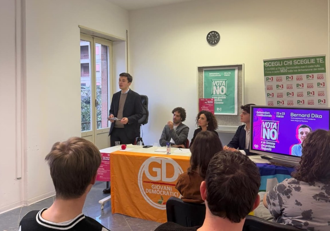 TERNI – Si è tenuto ieri pomeriggio presso la sede della Federazione PD di Terni in via Mazzini l’incontro pubblico organizzato dai Giovani Democratici di Terni in vista del referendum costituzionale del 22 e 23 marzo 2026. L’iniziativa dal titolo «Per noi è No, grazie» ha registrato una partecipazione numerosa a testimonianza dell’attenzione crescente attorno a una riforma che incide direttamente sull’assetto della democrazia italiana. All’evento hanno preso parte Bernard Dika Sottosegretario alla Presidenza della Regione Toscana insieme a Benedetta Baiocco Presidente dell’Assemblea della Federazione PD di Terni e Gabriele Posti Responsabile Giustizia della Federazione locale. I lavori sono stati introdotti da Luca Serantoni e moderati da Francesco Buzzao dei Giovani Democratici di Terni.