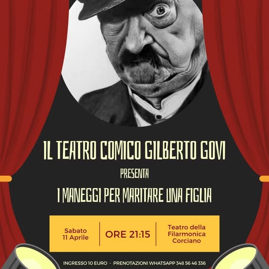 CORCIANO (Perugia) – Divertimento e solidarietà. Sabato 11 aprile, alle 21.15, il Teatro della Filarmonica di Corciano ospita la compagnia “Teatro comico di Gilberto Govi” con lo spettacolo “I maneggi per maritare una figlia”, commedia simbolo del leggendario interprete genovese. Lo spettacolo, alla sua seconda replica dopo il successo registrato nella rappresentazione andata in scena a Collestrada, vedrà salire sul palco Antonio Margiotta, Francesca Zecchetto, Leonardo Panfili, Paola Barbanera, Emma Bocchini, Francesco Consalvi, Monica Pelliccioni, Federico Gasparetto. La regia è curata da Antonio Margiotta coadiuvato dalla compagnia. Lo scopo dello spettacolo è più che nobile: “Quello a cui teniamo di più – dicono dalla compagnia – è che il netto dell’incasso andrà a sostenere un bambino affetto da neuroblastoma”. Il costo del biglietto è di 10 euro. Per informazioni e prenotazioni è possibile inviare un messaggio WhatsApp al numero 3485646336.
