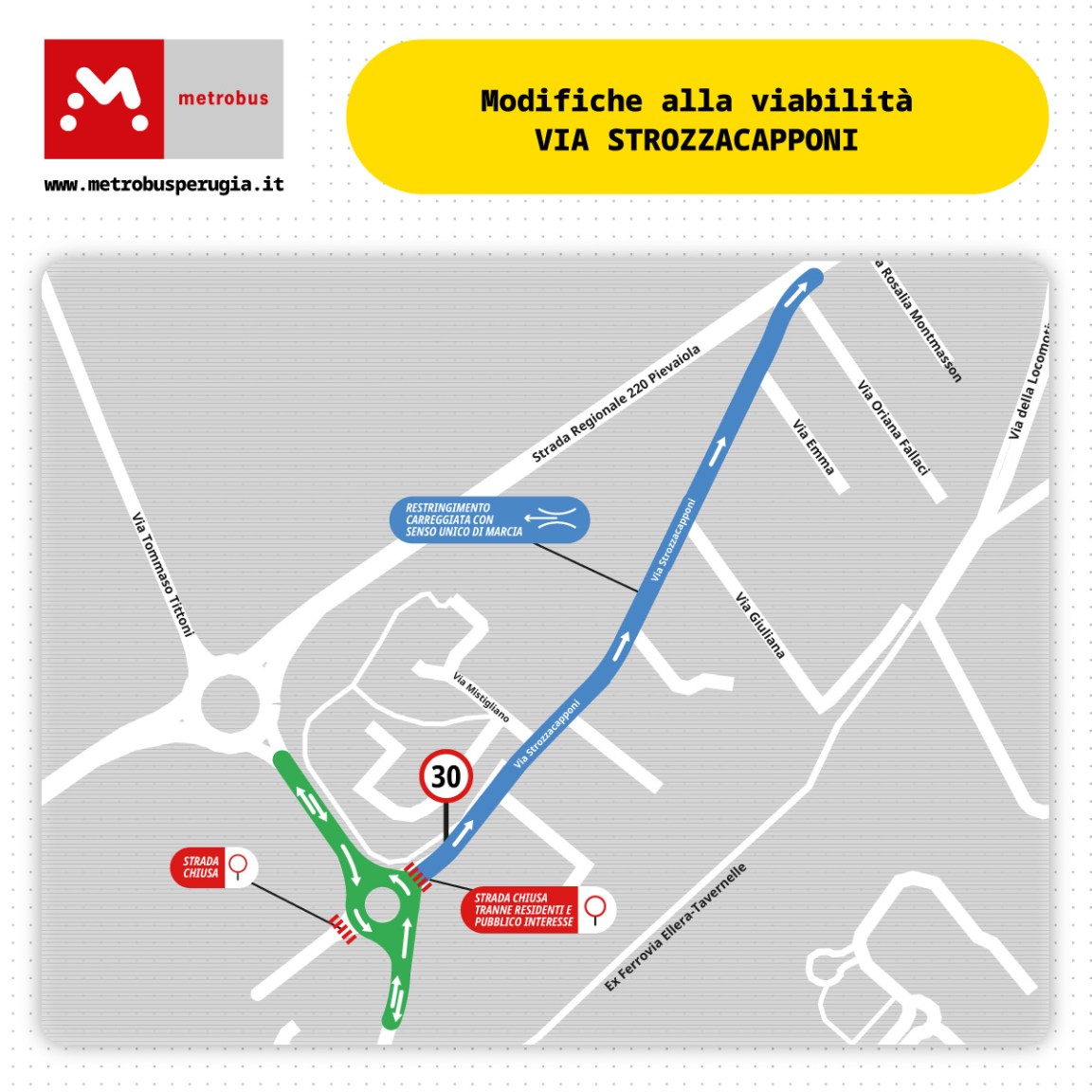 PERUGIA – Al fine di consentire la prosecuzione dei lavori per la realizzazione del Metrobus nell’area di via Strozzacapponi, è stata adottata l’ordinanza n. 345 del 27 febbraio 2026 che prevede alcuni provvedimenti sulla circolazione.