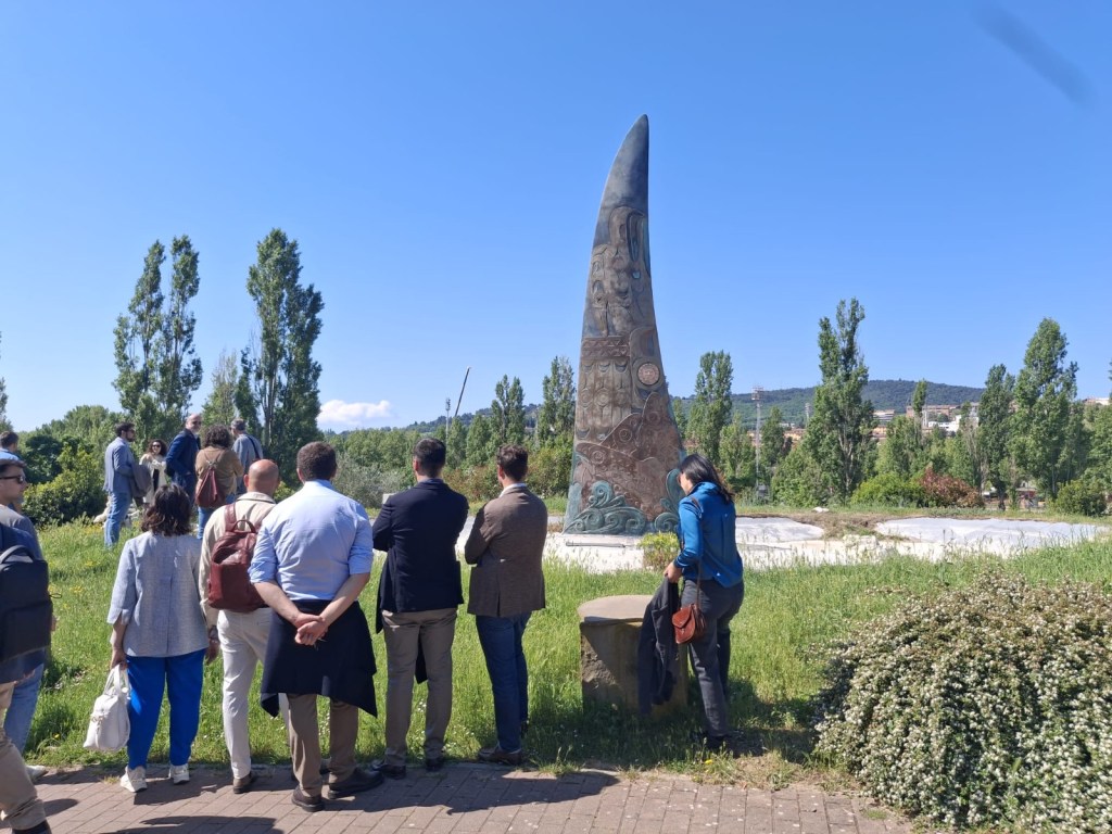 L’ultima parte del sopralluogo è stata incentrata sull’analisi della Sister Orca, la celebre opera del nativo americano Marvin Oliver per celebrare il gemellaggio tra Perugia e Seattle.