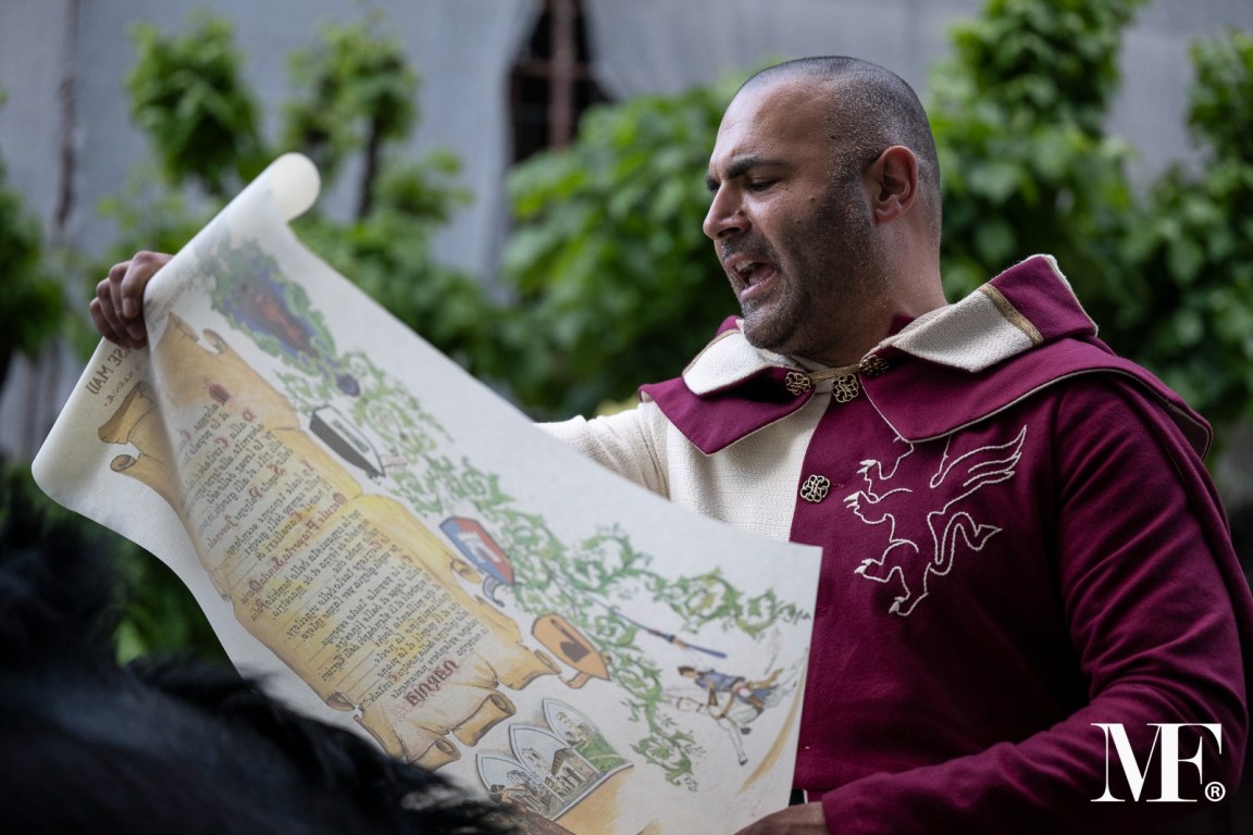 Il Bravio, realizzato quest’anno da Cristiano Carotti e intitolato “L’anno del cavallo di fuoco”, ne è immagine e simbolo: una visione che fonde forza e tensione, materia e movimento, e che rinnova il racconto della Festa attraverso lo sguardo contemporaneo dell’artista. La notte del Grande Corteo Storico accende la città di riflessi e ombre, tra centinaia di figure in cammino, ma è al Campo dei giochi che tutto converge. Il 10 maggio i cavalieri dei Terzieri di Mezule, Fraporta e Santa Maria entrano in campo: pochi istanti, un galoppo teso, la traiettoria precisa della lancia che cerca l’anello. Precisione assoluta, controllo, istinto. È lì che il gesto si fa essenziale, e la storia diventa sfida.