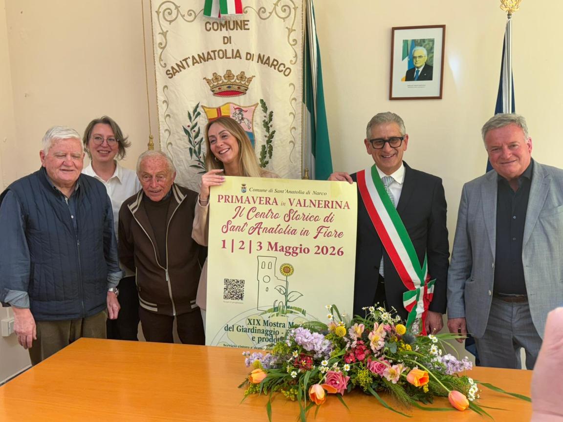 SANT’ANATOLIA DI NARCO (Perugia) – Torna a sbocciare ‘Primavera in Valnerina – Il centro storico di Sant’Anatolia in fiore’, in programma nel borgo umbro da venerdì primo a domenica 3 maggio. La XIX edizione della mostra mercato del giardinaggio, florovivaismo e dei prodotti tipici è stata presentata giovedì 16 aprile durante un incontro a cui hanno partecipato Tullio Fibraroli, sindaco di Sant’Anatolia di Narco, e Pietro Bellini, presidente del Gal Valle umbra e Sibillini. L’evento, la cui inaugurazione ufficiale sarà venerdì primo maggio alle 11.30 in centro storico, è organizzato dal Comune di Sant’Anatolia di Narco, con il contributo del Consorzio Bim ‘Nera e Velino’ della Provincia di Perugia e finanziato dal Gal Valle umbra e Sibillini (AS 2.1 nell’ambito del Csr per l’Umbria 2023-2027, intervento Srg 06).