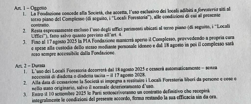 Quindi due cose: la richiesta di liberare gli uffici perché irregolari e di pagare i 32mila euro di affitto arretrati per la foresteria. In più ci sono gli oltre 70mila euro di bollette della luce mai pagate. Luce che torna solo se il fornitore incassa il pregresso.