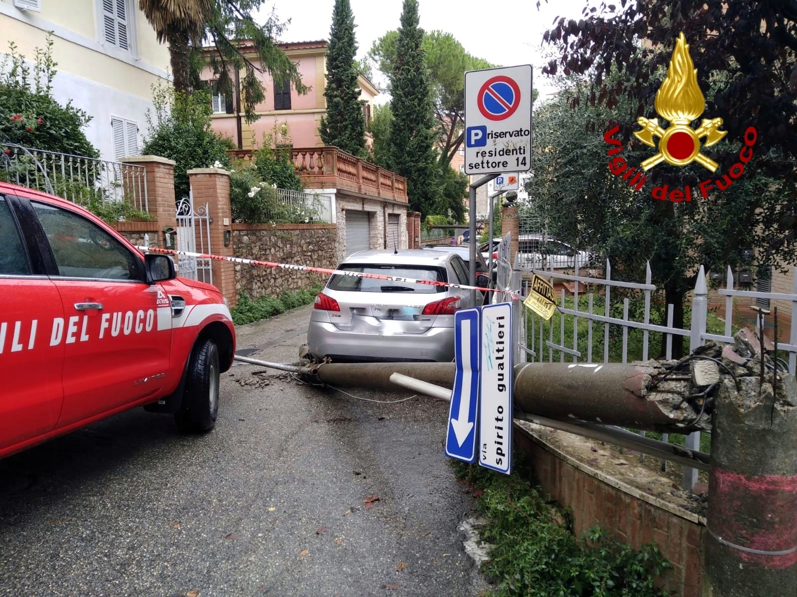 in -> primo piano, Cronaca, Gallery Perugia, pioggia e vento abbattono una pianta: vengono giù pali elettrici e lampioni