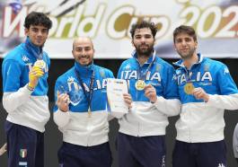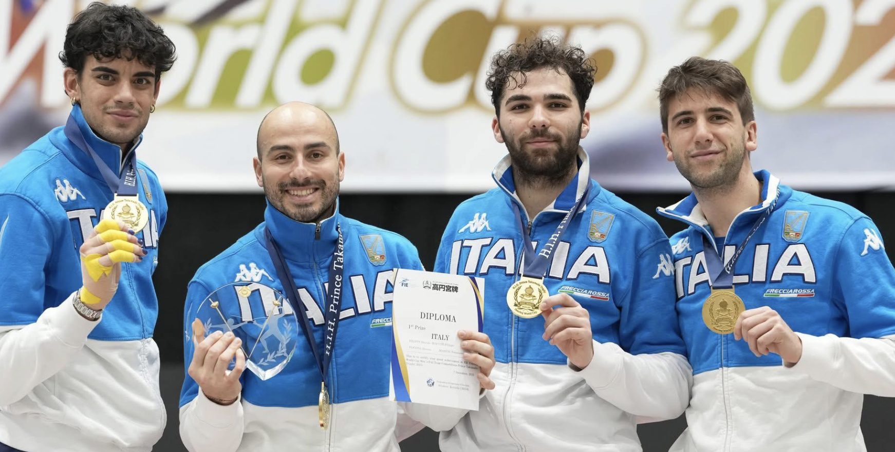 in -> primo piano, Sport Straordinario Alessio Foconi, sempre sul tetto del mondo: oro a Fukuoka con il quartetto Azzurro L’Italia del fioretto maschile conquista il primo posto con Davide Filippi, Alessio Foconi, Filippo Macchi e Tommaso Marini