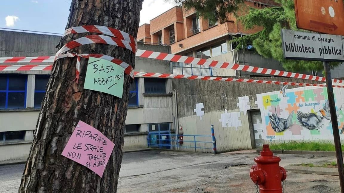 «Riparate la strada e fermate le motoseghe»: in via Magno Magnini si difendono i pini dall’abbattimento