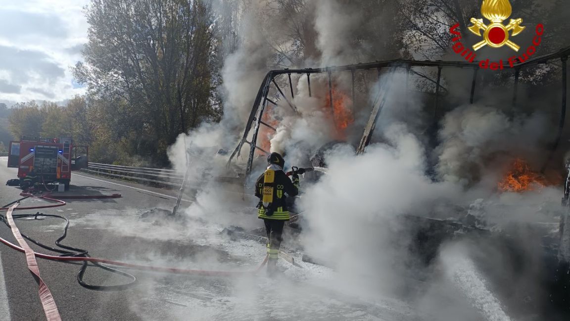 Paura sull’Ancona-Perugia: autotreno in fiamme