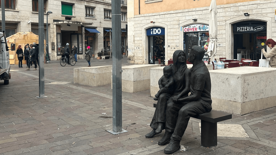 La pista di pattinaggio su ghiaccio fa le scarpe alla Coppia con bambino